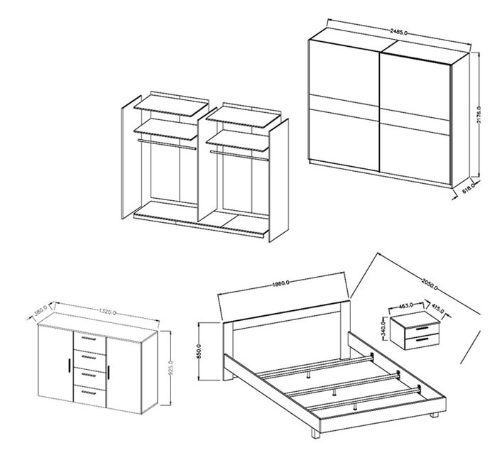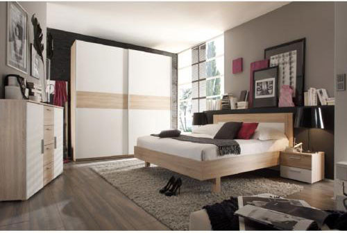 Spalnica MIA - komplet je modernega dizajna in bo v prostor vnesla svežino. Spalnica je v barvi hrasta v kombinaciji z belo. V kompletu prejmete 4 komponente (garderobna omara, nočna omarica, komoda in postelja).