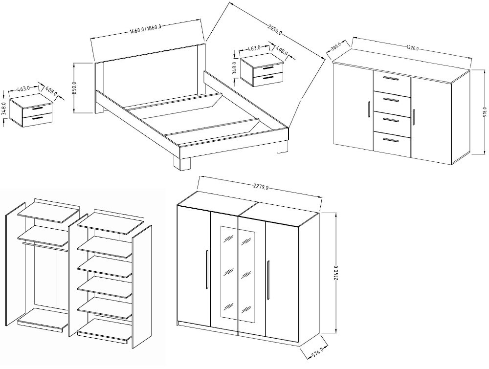 Spalnica Vera je izdelana iz visoko kvalitetnega in trpežnega materiala, ki je nezahteven za vzdrževanje in visoko odporen na abrazijo. Za izdelavo je uporabljen z melaminsko folijo oplemeniten iveral, ki je dovolj močen in stabilen ter vam nudi zaščito pred mehanskimi poškodbami in vlago. Dobra in kvalitetna izdelava zagotavlja dolgo življenjsko dobo pohištva. Samo zdaj si lahko privoščite vrhunsko in kvalitetno spalnico po posebni ceni.