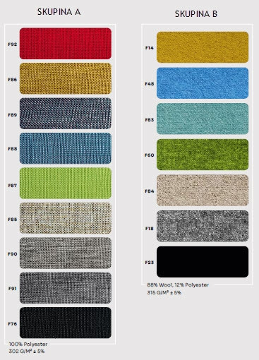 tkanine skupine B so iz kombinacije 88% volne in 12% poliestra