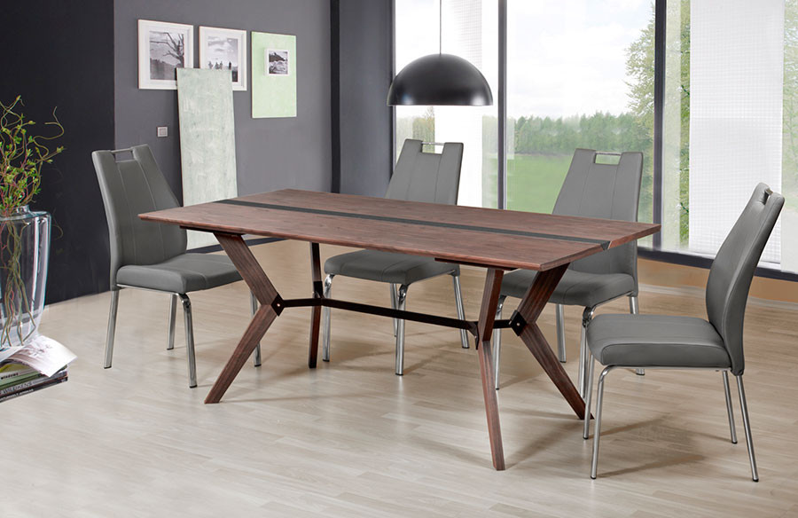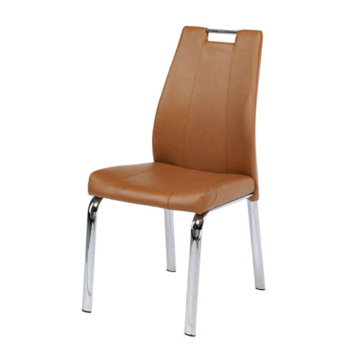 Stol BRU je jedilni stol z ogrodjem iz kromirane ovalne cevi. Sedišče in naslon sta iz kvalitetnega umetnega (PU) usnja. Višina sedišča je 48cm.