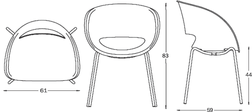 Dimenzije stola Eye: Širina: 61 cm; Globina: 59 cm; Višina: 83 cm; Višina sedala: 44 cm