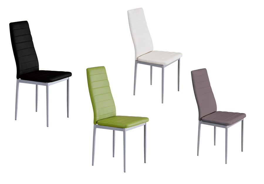 Stol za jedilnico Smile vas bo navdušil s svojim preprostim, a elegantnim dizajnom. Stol je oblazinjen v umetno usnje v različnih barvah (bela, bež, črna, zelena in cappuccino).