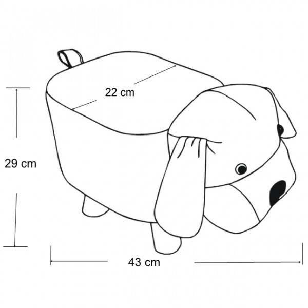 Simpatičen taburejček v rjavi barvi, ki je oblikovan v obliki psička s povešenimi ušesi. Tabure bo popestril sobico vašega malčka in vam dobro služil dolgo časa, saj je izdelan iz kakovostnih materialov. Oblazinjen je v umetno usnje, nogice ima izdelane iz masivnega lesa.