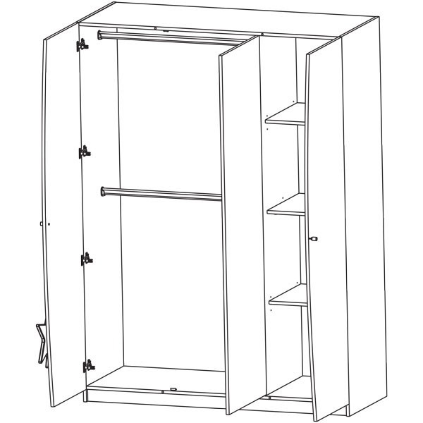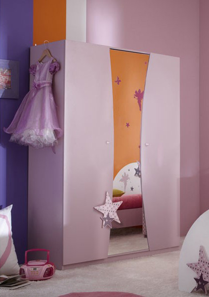 Trodelna garderobna omara Fairy roza barve je del linije Fairy. Desni del omare ima 3 police, levi del pa 2 palici za obešanje oblačil.