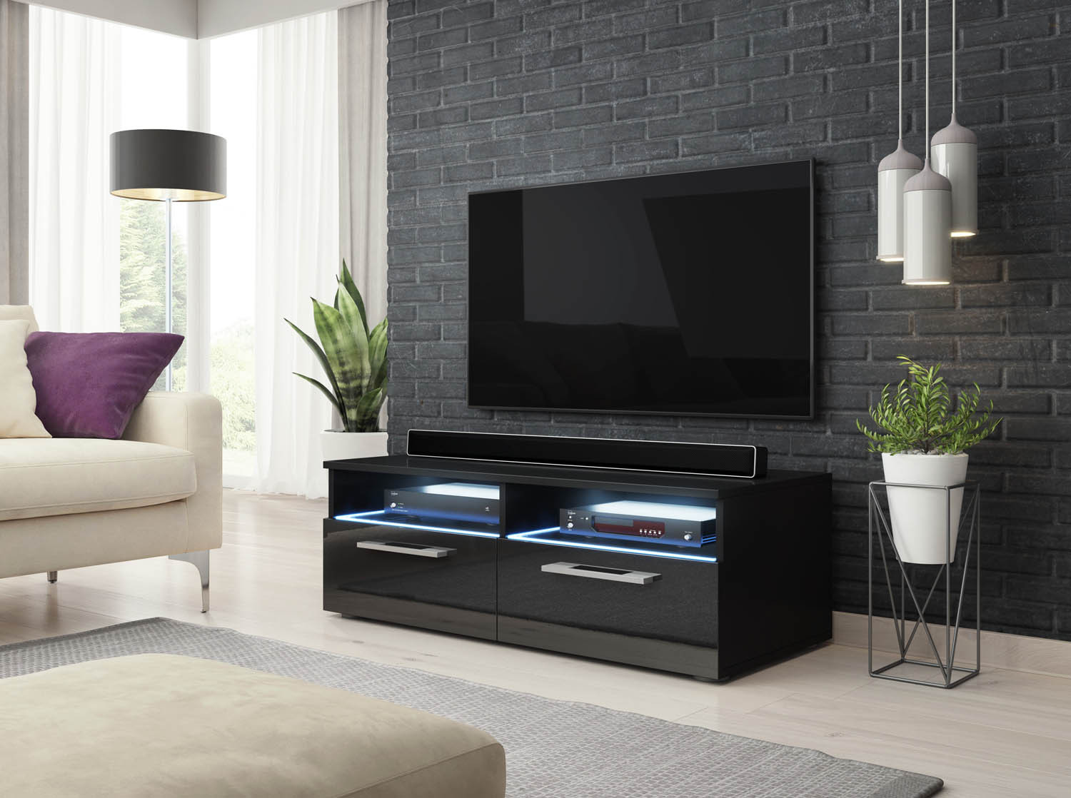 Je vaš dom pripravljen za novo pohištvo vendar vam primanjkuje prostora? TV omarica BONNY črna visoki sijaj/mat črna + LED je izdelan z namenom, da bo vaš dom na preprost način videti bolj eleganten. Dekorirajte svojo dnevno sobo s TV regalom, s katerim bo vaš dom izgledal večji in lepo pospravljen. Imate majhen dom a vseeno želite, da je stilsko dovršen? Potem ste verjetno zelo pazljivi pri izbiri pohištva, saj ne sme biti le funkcionalno toda tudi prijazno do oči.Če v vašem domu ni veliko prostora je določitev postavitve precej težavna. Zato je ta TV regal zasovan z namenom, da naredi vaš dom bolj prostoren in posledično tudi bolj udoben.