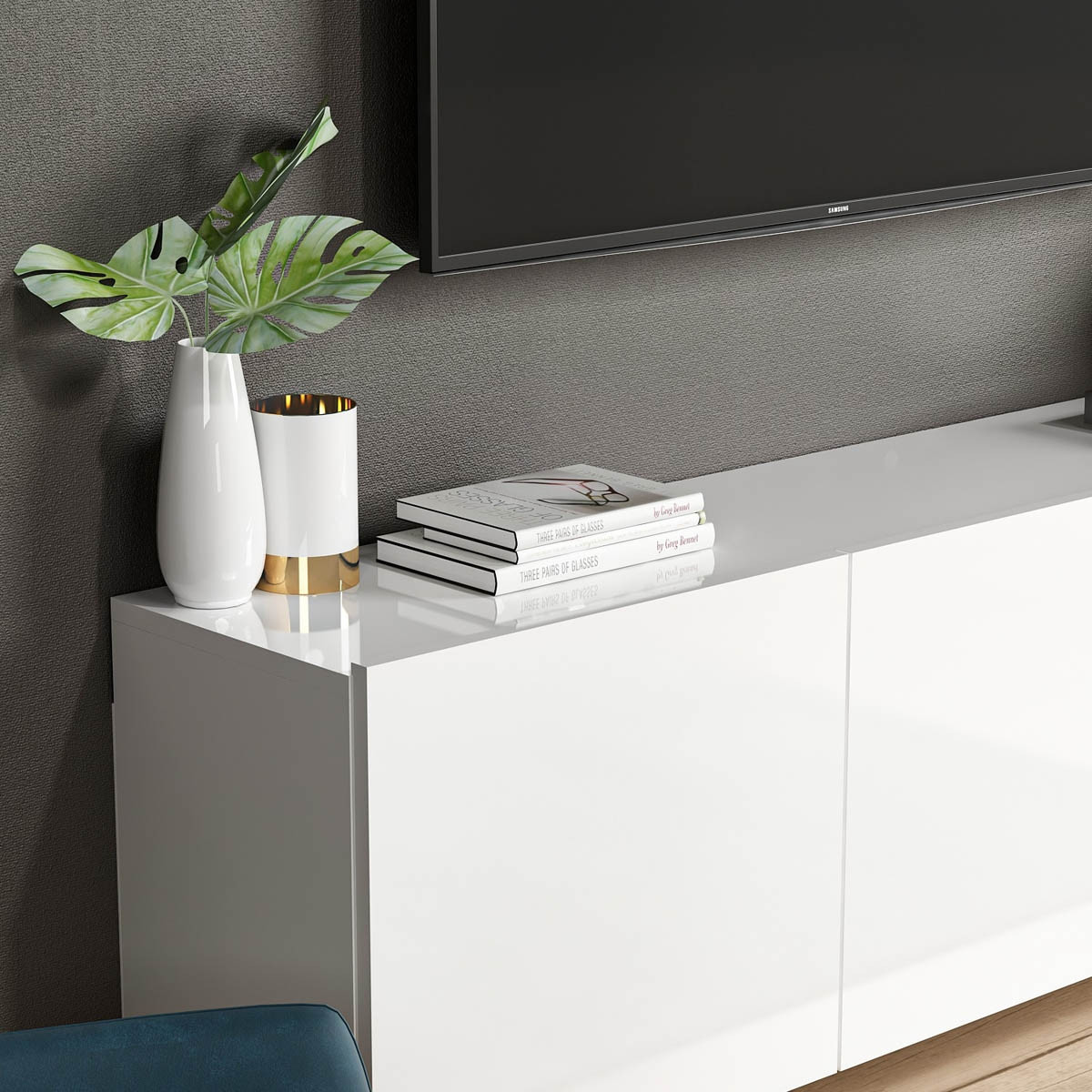Tv omarica COMORAT je preprosta in elegantna. Bela barva ji daje svež in svetel videz, zaradi česar se lepo prilega v skoraj vsak interier. Poleg tega pa je tv omarica izdelana tako, da se jo lahko enostavno pritrdi na steno, kar omogoča enostavnejše sesanje pod njo, brez potrebe po prestavljanju težkih pohištvenih kosov. Omarica ima tri vrata, ki omogočajo praktično shranjevanje različnih predmetov.