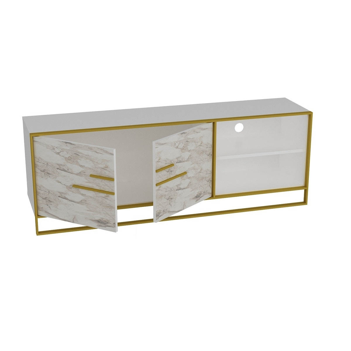 Tv omarica NATURA je sodobnega izgleda in vsebuje vratca v imitaciji marmorja, zato je popolna izbira za tiste, ki iščejo estetsko privlačno in funkcionalno pohištvo za svoj dom. Omarica ima dovolj velik prostor za shranjevanje vaše opreme in naprav, kot so televizor ali DVD predvajalnik.