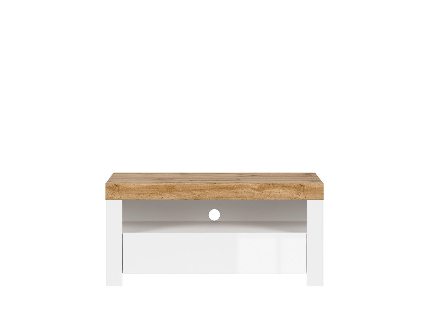 TV omarica NOEL 106 cm je odlična za vse manjše dnevne sobe v katerih ni veliko prostora. Omarica je na voljo v barvni kombinaciji hrasta in bele barve v visokem sijaju, ki v dom prinese več svetlobe in elegance. Omarica ima funkcijo tihega zapiranja, ki pripomore k lažji vsakodnevni uporabi ter preprečuje nastajanje poškodb. Sestavljena je iz odprte police ter priročnega predala za shranjevanje, kamor lahko pospravite razne revije, časopise in ostale malenkosti.