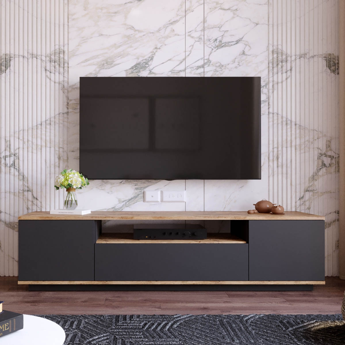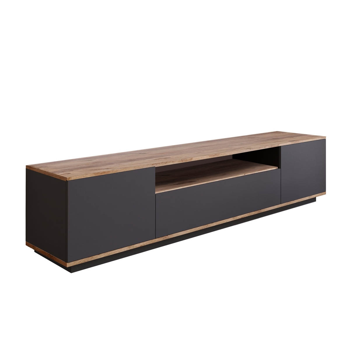 Tv omarica SAUL je modernega izgleda. Tv omarica vam bo nudila obilo prostora za shranjevanje igrač in družabnih iger, ki bodo vedno na dosegu roke, hkrati pa dajala vtis pospravljenega prostora, ki vam bo polepšal dan.