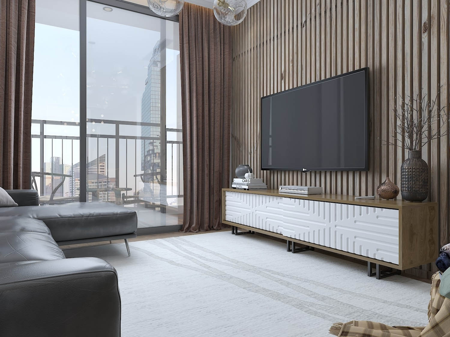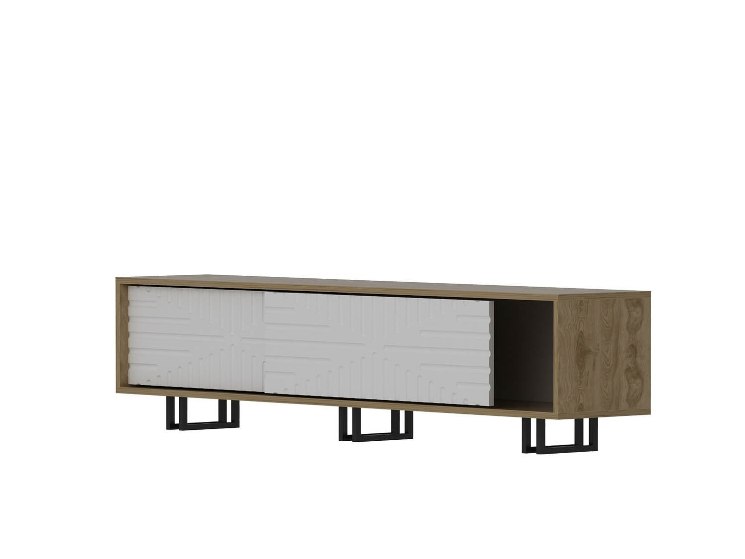 Komoda TAMBUR je krasen kos pohištva, ki bo vsekakor pritegnil pozornost vaših gostov. Na površini komode lahko opazimo zanimive in edinstvene vzorce. Komoda ima tudi dvoja drsna vratca, ki se premikajo z lahkoto in zagotavljajo enostaven dostop do notranjosti. Poleg tega ima komoda kovinske nogice, ki ji dajejo stabilnost in eleganten izgled.