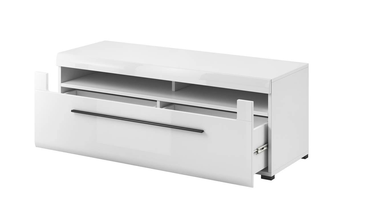 Potrebujete kompaktno TV omarico, ki ne zavzame veliko prostora? TV omarica VILNA je odlična izbira tudi za najmanjše dnevne sobe, saj maksimalno izkoristi zaseden prostor. Omarica ima odprto polico na katero lahko odložite razne aparate in konzole, ter dvojni izvlečni predal v katerega lahko pospravite razne revije, DVD-je, igre in ostale poljubne predmete.