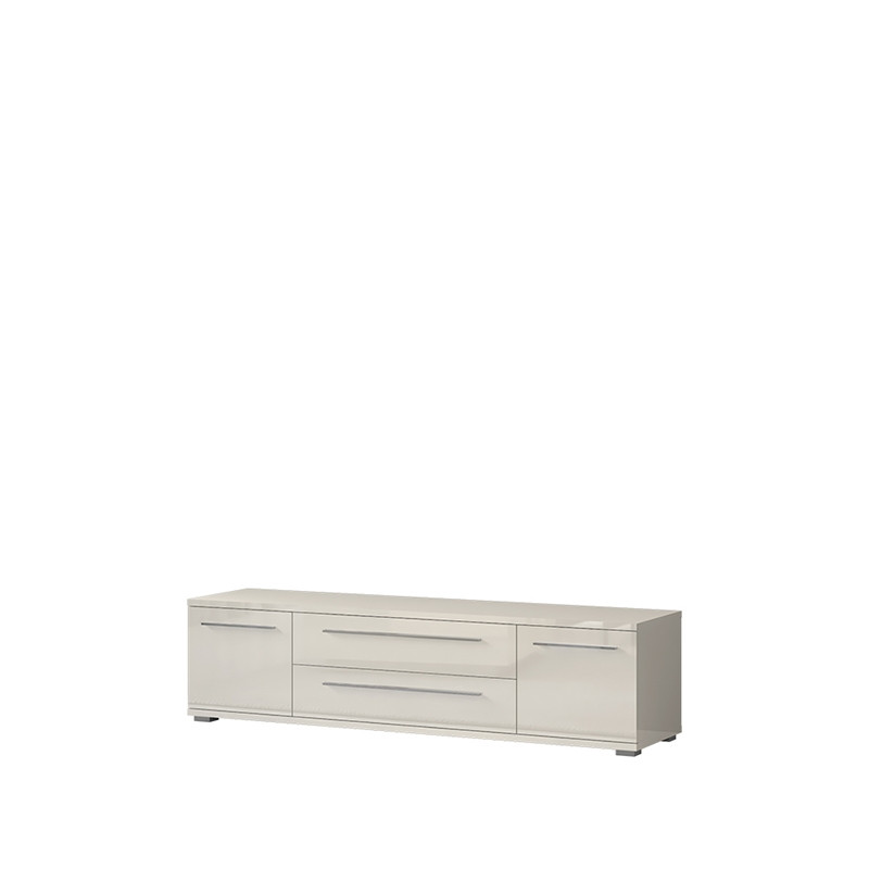 TV regal Radda Piano je razdeljena na dvoja vratca in dva prostorna predala, zato lahko vanj pospravite številne DVD-je, družabne igre in druge poljubne predmete in s tem ohranite čisto in organizirano dnevno sobo! Na voljo je v bež barvi v visokem sijaju, ki bo vašemu domu dodala kanček več svetlobe in elegance. Regal je izdelan iz oplemenitene iverne plošče in zunanji deli so lakirani z UV lakom, ki je 4-krat bolj odporen na praske in poškodbe kot standardni lak! Ima funkcijo tihega zapiranja, ki omogoči dolgoletno brezskrbno uporabo. Regal je del kolekcije modularnih dnevnih sob Radda Piano, pri kateri imate na voljo več kot 40 različnih artiklov med katerimi lahko prosto izbirate in si ustvarite sanjsko in unikatno dnevno sobo.
