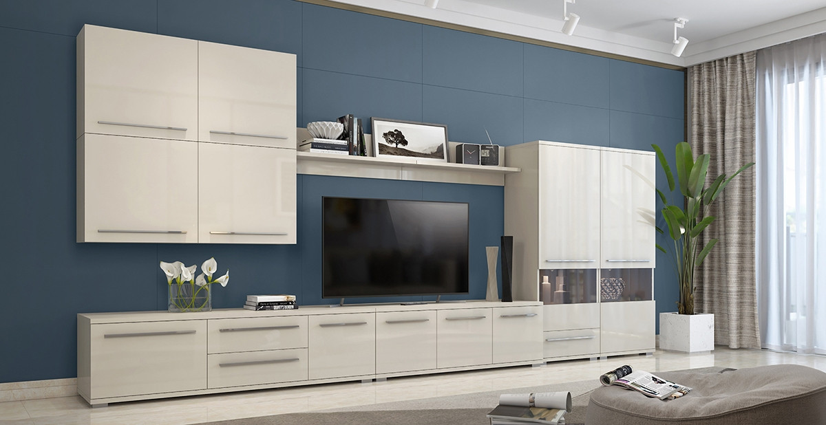 TV regal v topli bež barvi bo v vaš dom prinesel več svetlobe in veliko dodatnega prostora za shranjevanje!
