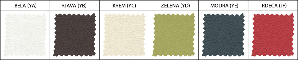 Bela, bež, rjava, rdeča, modra, zelena.