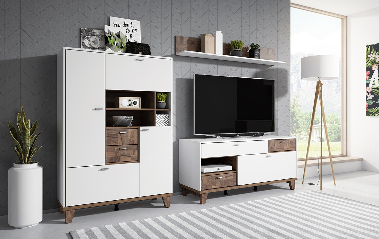 Kolekcija OSLO se odlikuje po velikem številu manjših omaric, predalov in polic, ki vam olajšajo ohranjanje reda in čistoče v dnevni sobi. Omogoča izjemno dobro organizacijo najrazličnejših predmetov, zato boste vedno vedeli, kje je kakšna stvar pospravljena.