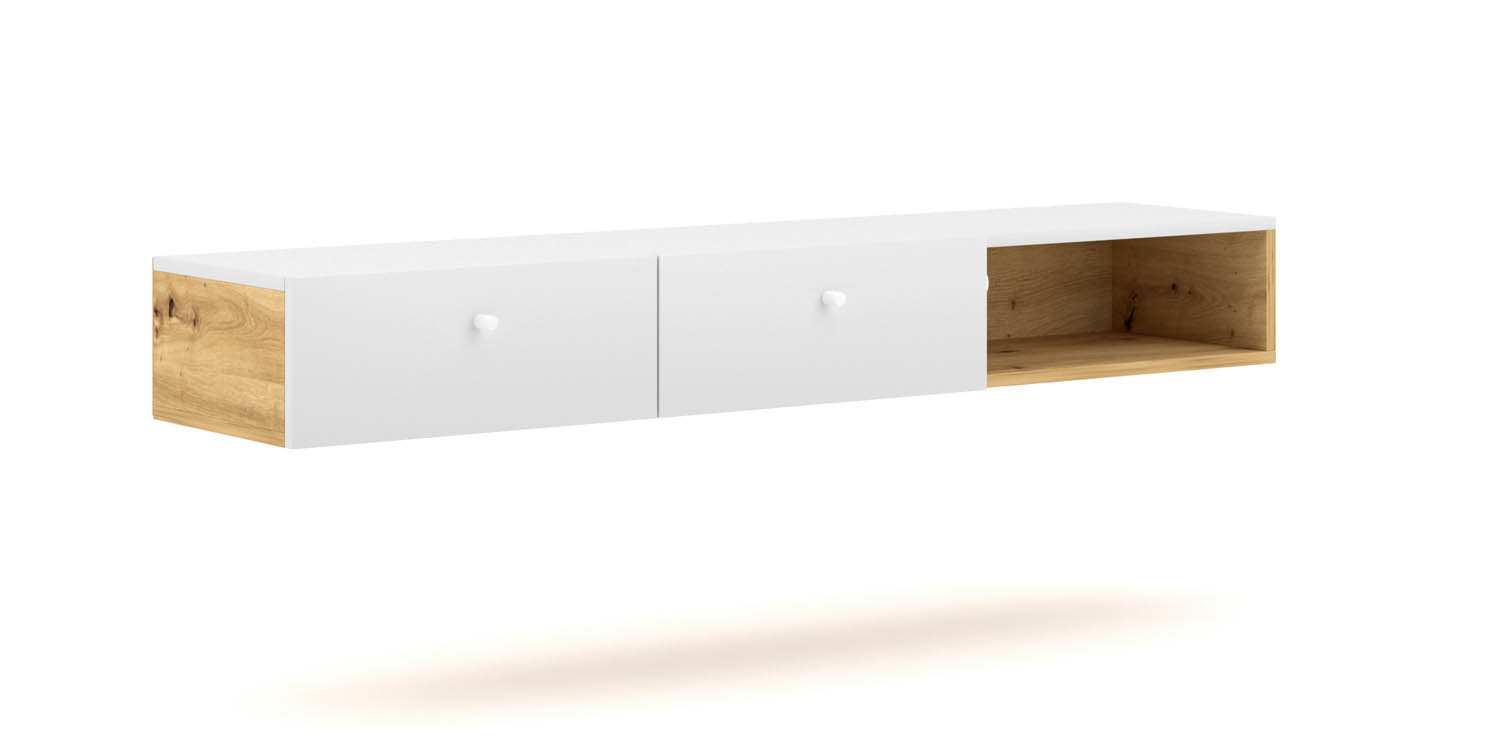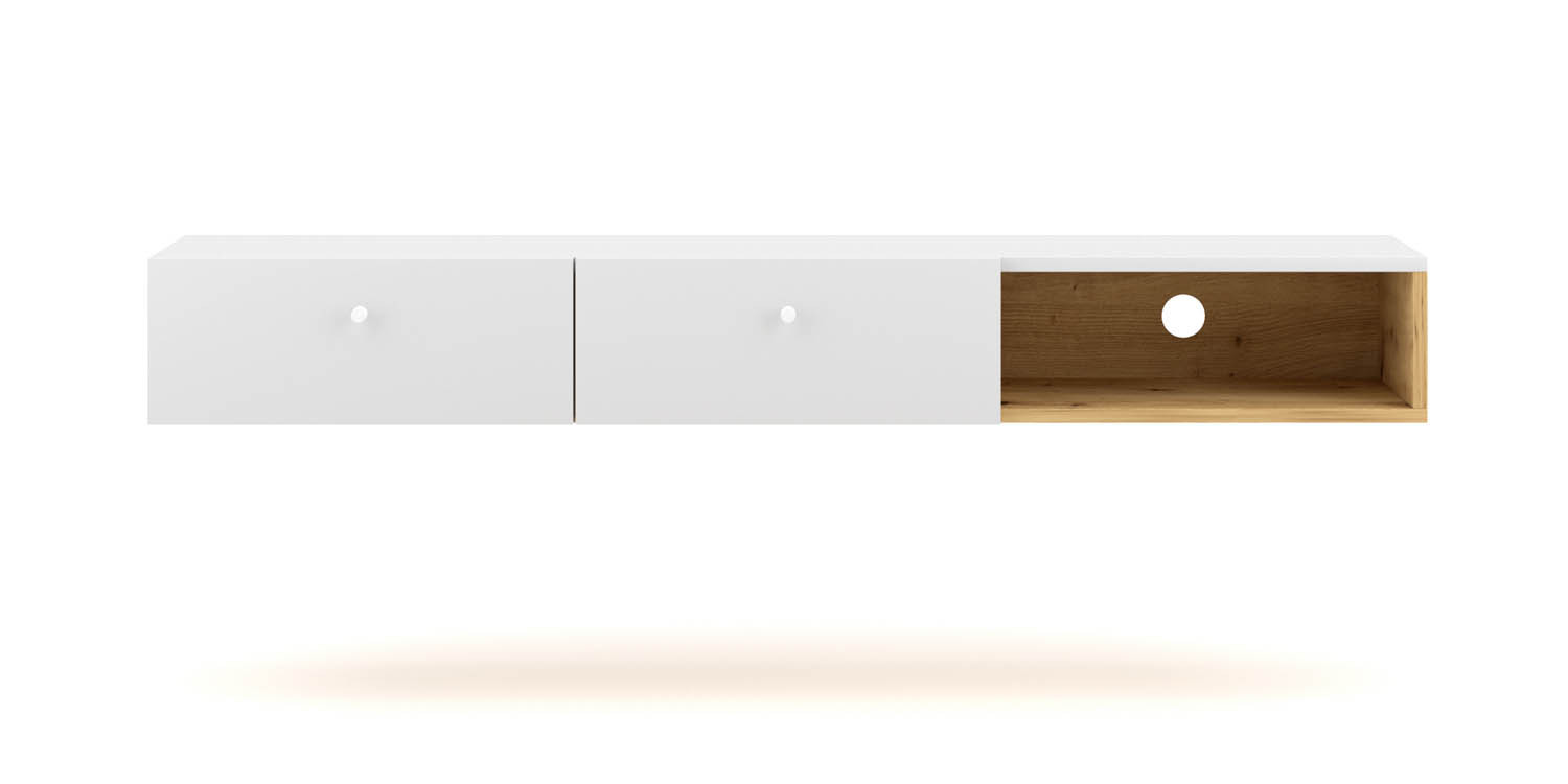 Je vaš dom pripravljen za novo pohištvo vendar vam primanjkuje prostora? Viseča TV omarica TARA 140 cm HRAST + BELA je izdelan z namenom, da bo vaš dom na preprost način videti