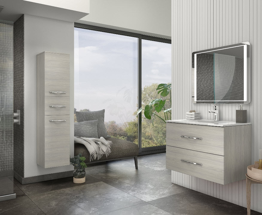Visoka omarica CORALLO ima ena vrata in mehko zapiranje. Ročaji so kromirani in robovi so ABS. Omarica je na voljo v barvi sivi hrast, ki je prikazana na 3.sliki!