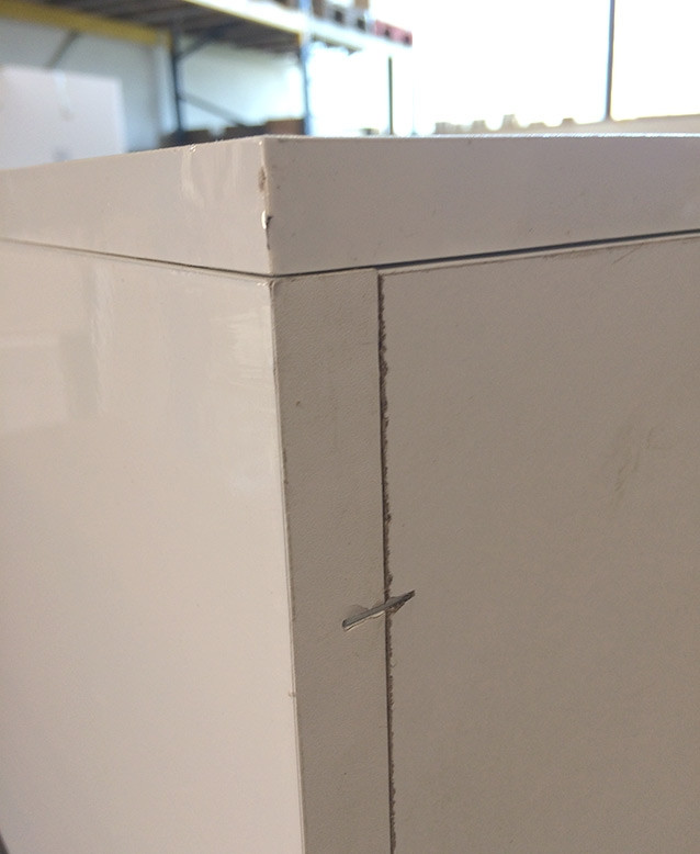 Pohištvo je popolnoma novo, ima pa nekaj proizvodnih napak (površni zaključki). Embalaža izdelka je bila odprta. Slike v galeriji.