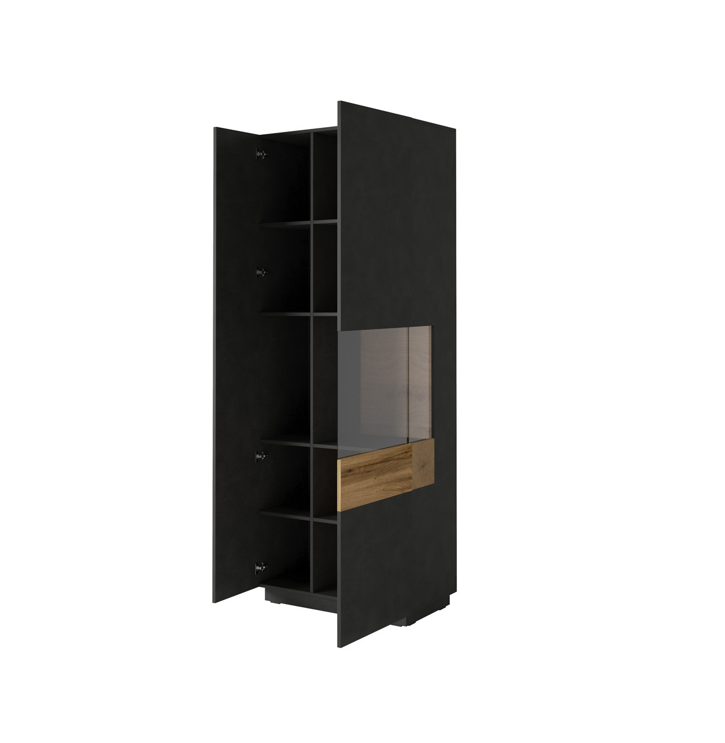 Opremite svojo dnevno sobo ali jedilnico z elegantno visoko vitrino STOCKHOLM, s katero bo vaš dom izgledal bolj prefinjen in moderen! Vitrina vam nudi veliko prostora za shranjevanje saj vsebuje kar 10 poličk! Vratca imajo push-to-open mehanizem za lažje odpiranje in preprečevanje poškodb.