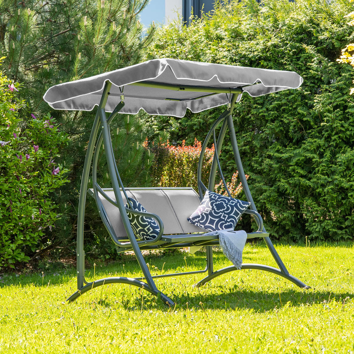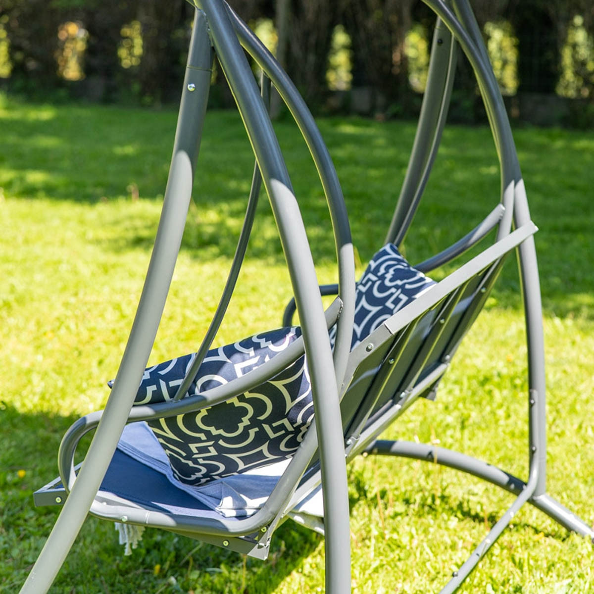 Vrtna gugalnica VIKTORIA NB je narejena za maksimalno 3 osebe, ki lahko uživajo in se sproščajo ob guganju v vročih poletnih dneh. Na voljo je v sivi barvi, ki se odlično poda na vaš vrt ali teraso. Ogrodje gugalnice je narejeno iz kovine, ki daje varnejši občutek, njena maksimalna obremenitev pa znaša 350 kg.
