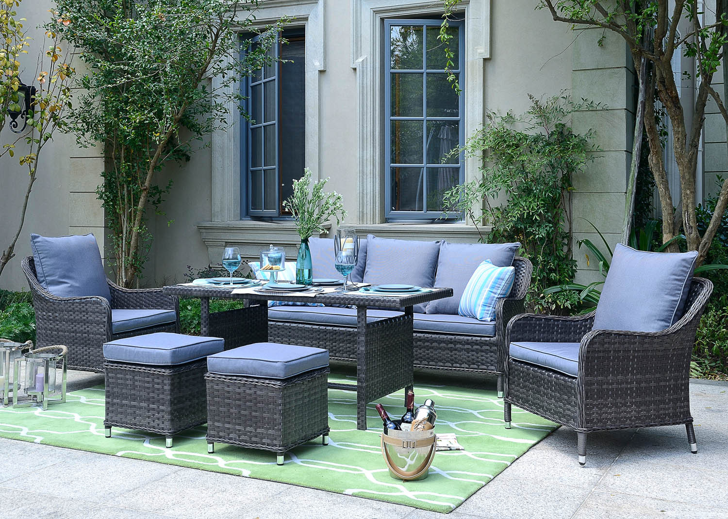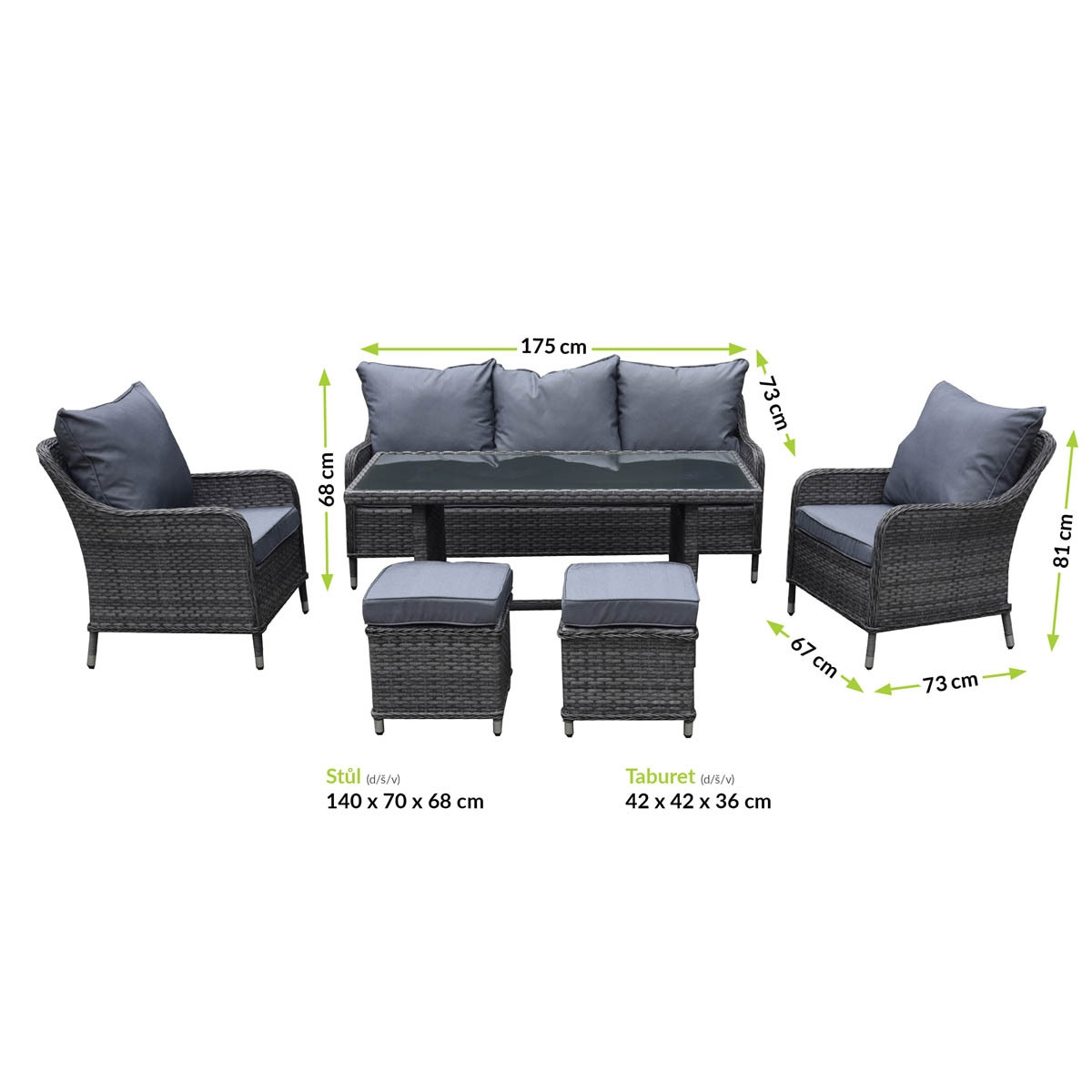 Privoščite si 6-delni vrtni set CEZAR, ki bo vaš vrt ali teraso spremenil v najbolj popularen prostor v vašem domu. Vključuje velik vrtni kavč, 2 fotelja, 2 stola ter prostorno vrtno mizo. Vrtna garnitura vam bo omogočila druženje in deljenje zgodb na vroče in brezskrbne poletne dni.