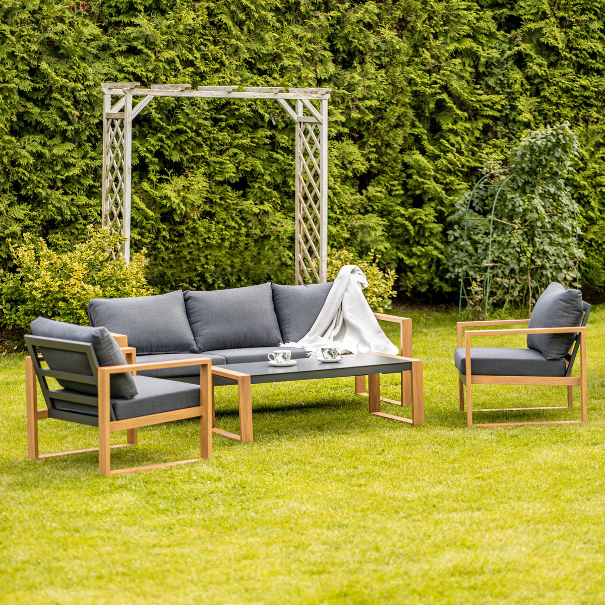 Vrtni set DUISBURG 2 je primeren za vrt ali teraso ter nudi prostor za prijetne večere z vašimi prijatelji. Vrtni set je modernega izgleda in vsebuje udobna sedišča na katerih se boste lahko sprostili in naužili svežega zraka. Vključuje kavč, dva stola ter nizko klubsko mizico.