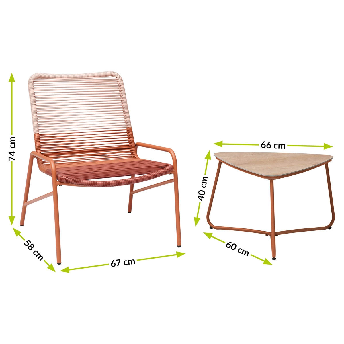 Sodoben vrtni set VICHY vsebuje dva stola ter majhno mizico in je primerna za teraso, balkon ali vrt. Privoščite si vrtni set, kjer bosta lahko s partnerjem uživala v razgledu in svežem zraku. Ogrodje stola je narejeno iz kovine, kar mu daje stabilnost.