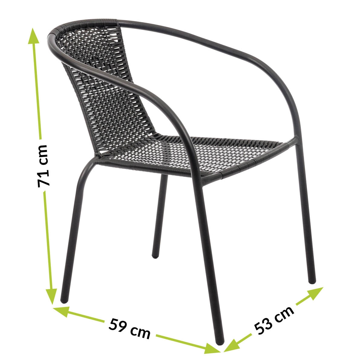 Manjši vrtni stol HERKULES je primeren za vrt ali balkon, kjer potrebujete udoben stol. Stol ima kovinsko ogrodje kar mu daje zanesljivost in stabilnost. Sedišče in hrbtišče pa sta prepleteni iz jeklenih in poliratanskih pletenic za večje udobje. Na voljo je v črni barvi.