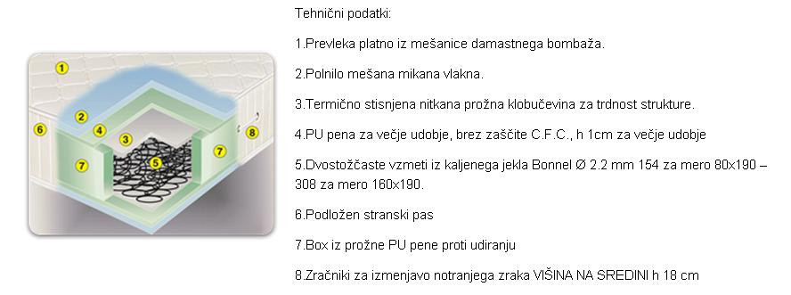 Vzmetnica Anatomic Confort Box (dimenzije od 80x190 do 200x200) je osnovni model vzmetnice, ki vsebuje PU peno proti udiranju.